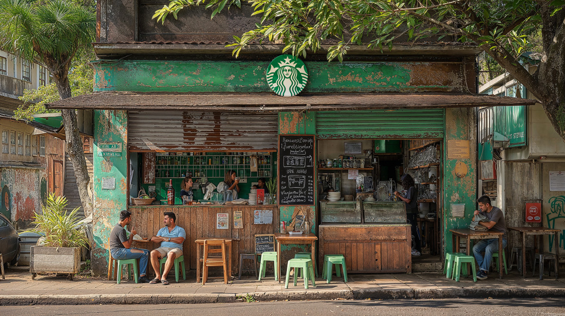 Agora, olhe para esta outra imagem: a Starbucks transformada em uma cafeteria genérica.
